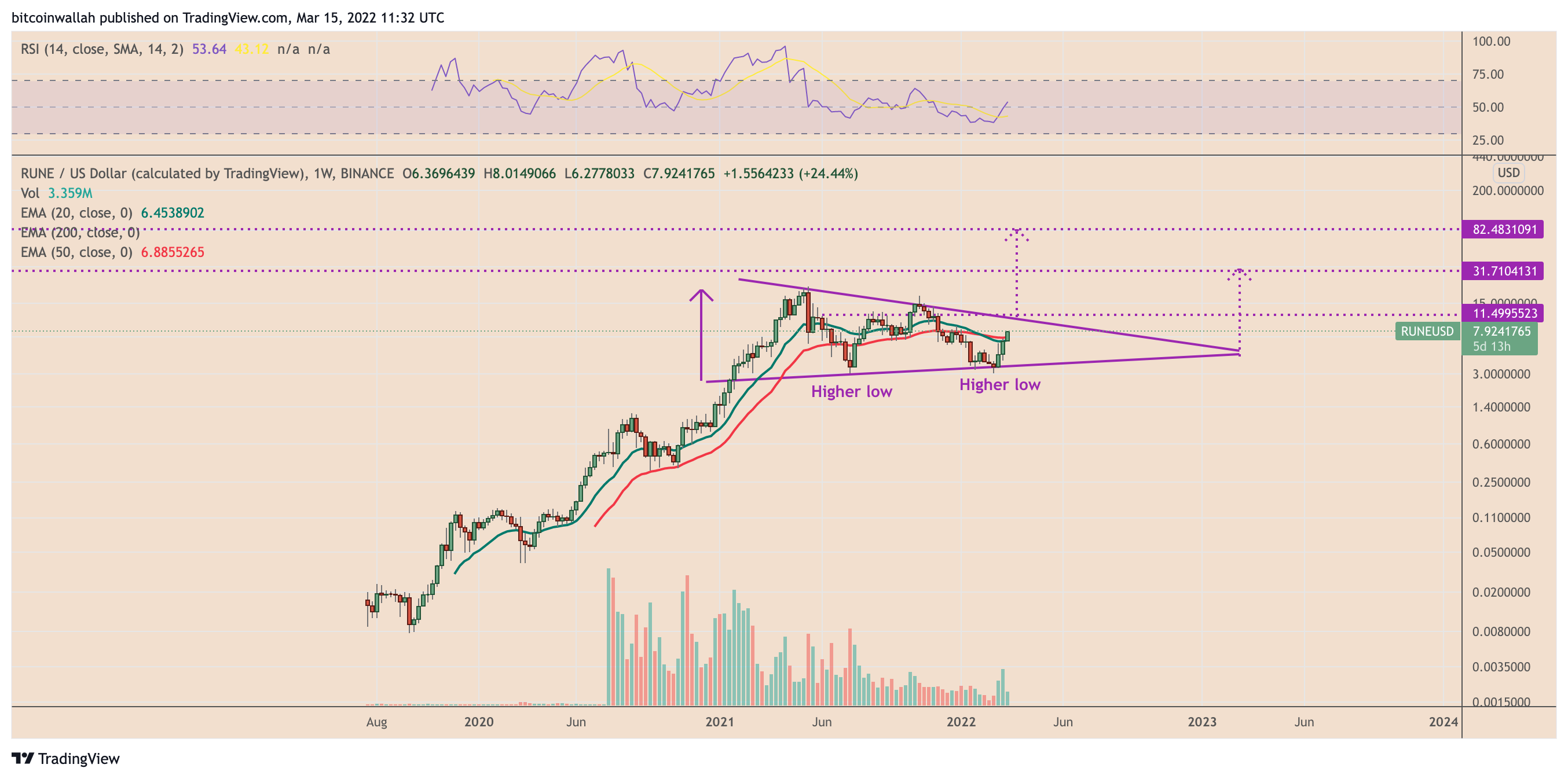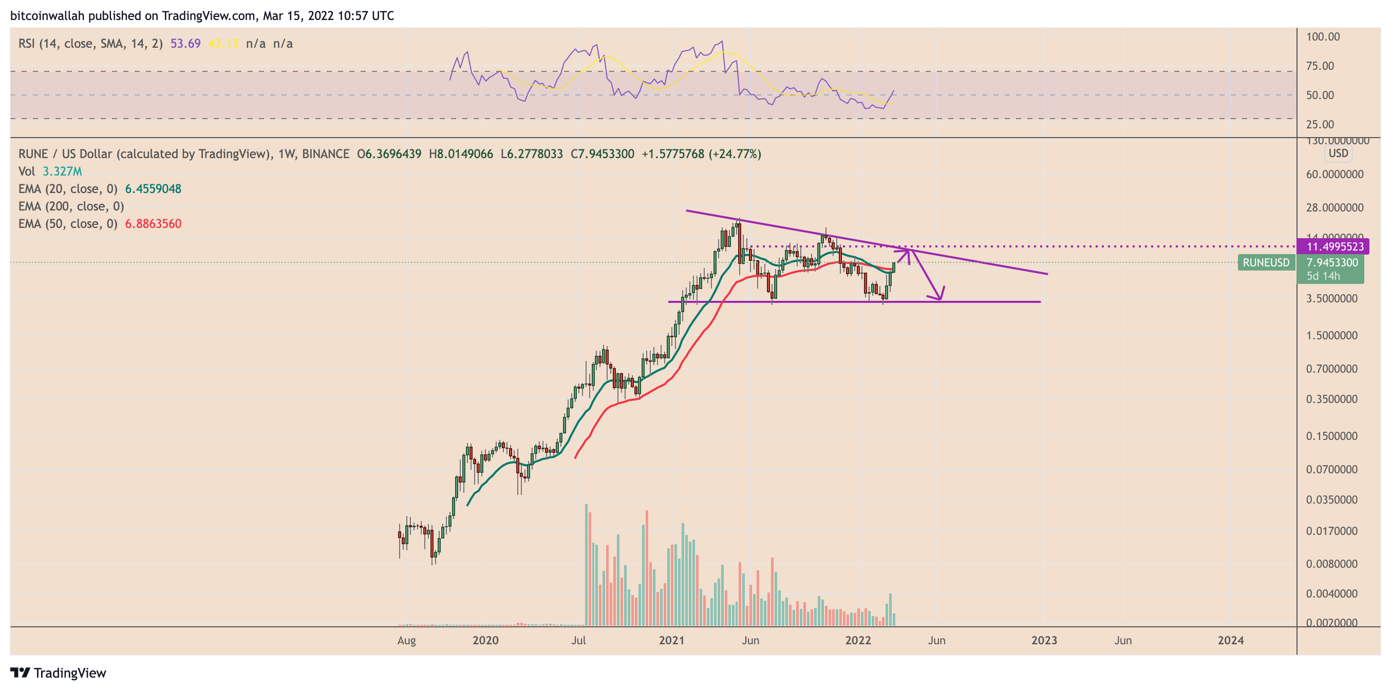 https://images.cointelegraph.com/images/840_aHR0cHM6Ly9zMy5jb2ludGVsZWdyYXBoLmNvbS91cGxvYWRzLzIwMjItMDMvZTYxNTc2NWYtYjVjYi00YmY0LTgzNzQtNDEwYWI1YzM4YjRlLmpwZWc=.jpegTHORChain (RUNE) could continue its upward momentum in the coming weeks even as it treads inside a classic bearish reversal structure.