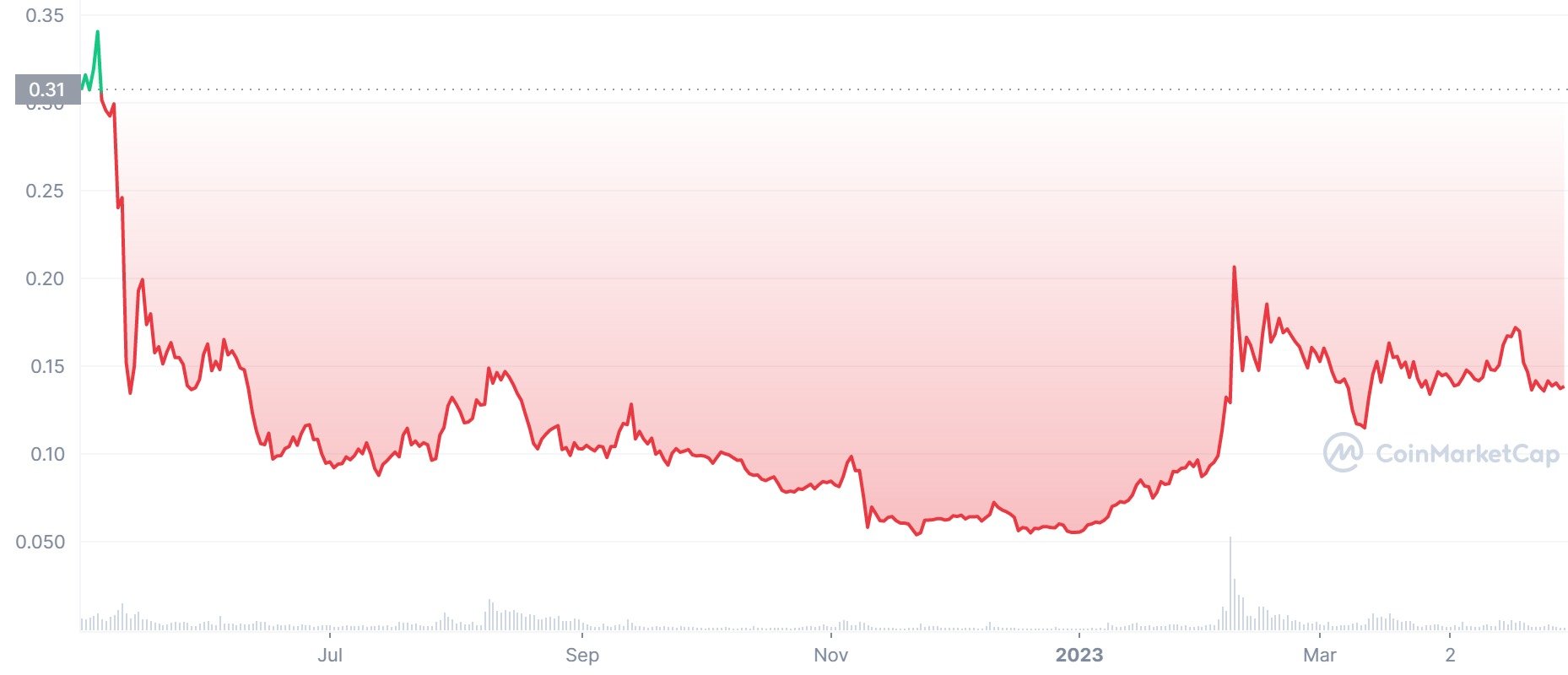 Cena tejto kryptomeny od zalistovania na burzy klesá. Treba ale podotknúť, že na burzy sa dostala v čase najväčšieho kryptomenového ošiaľu. Na druhej strane nám klesajúci trend umožňuje nakupovať The Graph za „výpredajové ceny“.