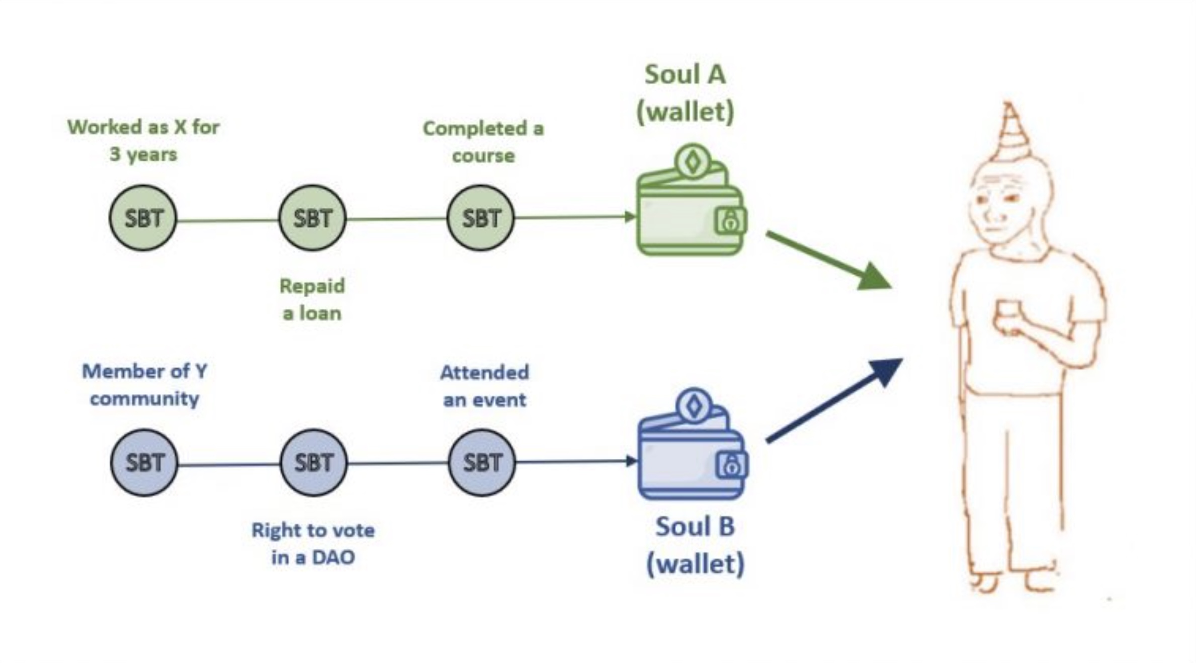 Establishing a culture of confirming credentials on-chain and holding them in a wallet will help such people build up a reputation faster and allow employees to check on the CV, as trustworthiness can easily be verified. For this, the concept of SBTs makes much sense, as those NFTs should not be tradable.