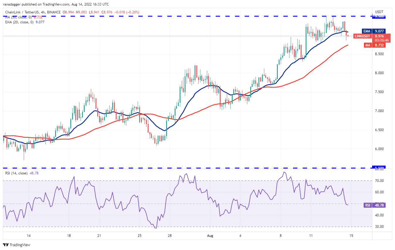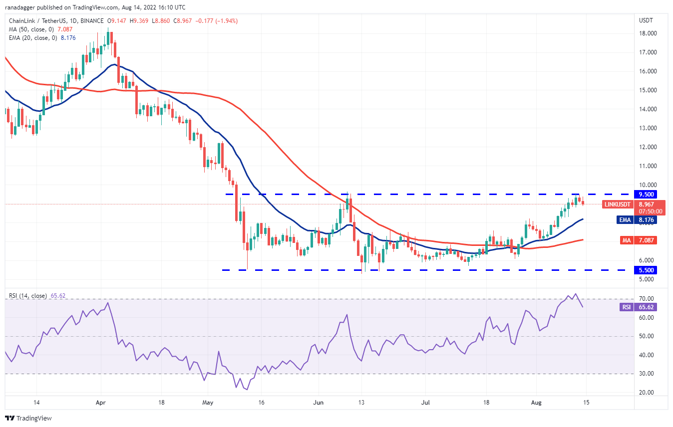 Chainlink (LINK) has been trading in a large range between $5.50 and $9.50 for the past several weeks. The bulls attempted to push the price above the range on Aug. 12 but the bears held their ground.