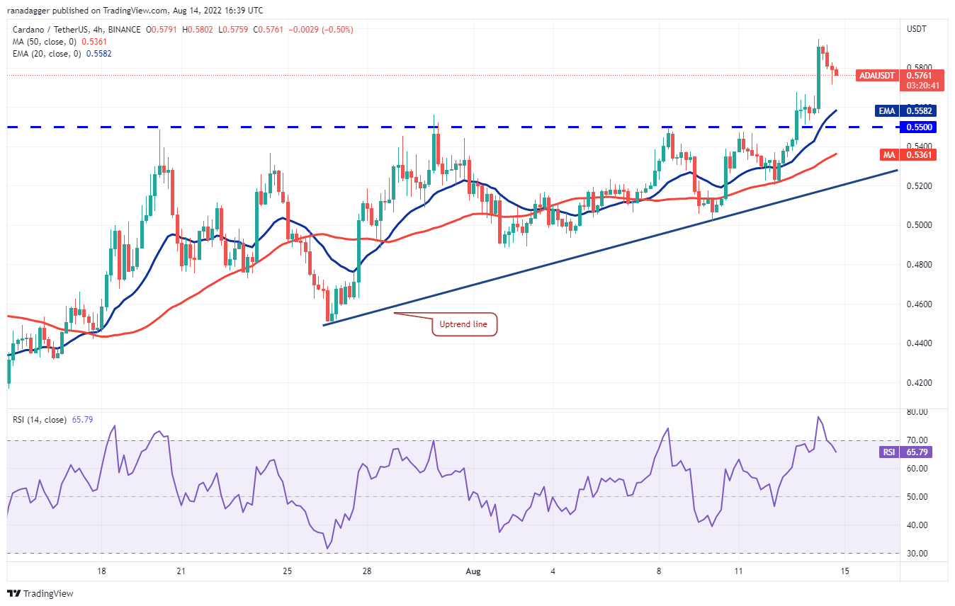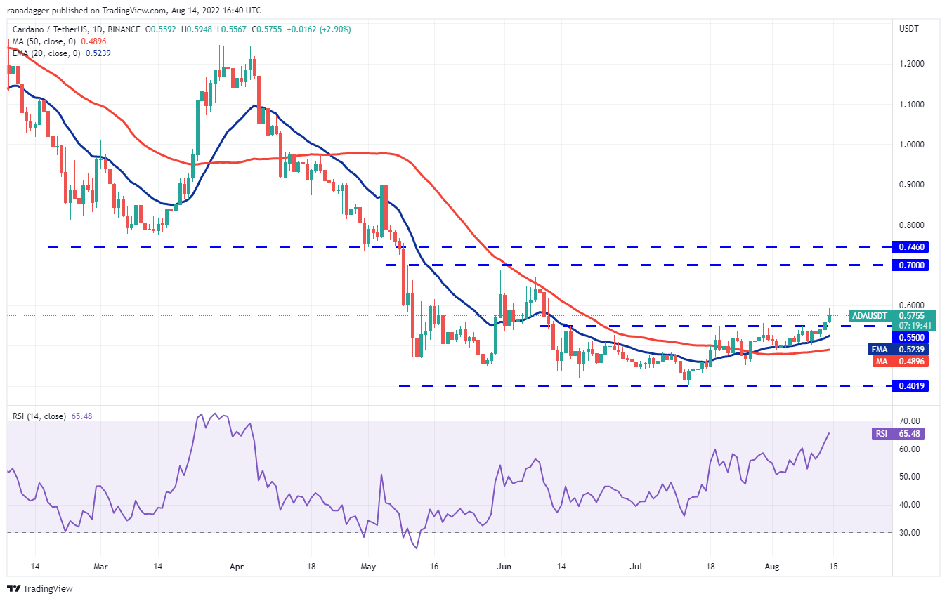 Cardano (ADA) broke and closed above the overhead resistance at $0.55 on Aug. 13. This indicates that the uncertainty has resolved in favor of the bulls.