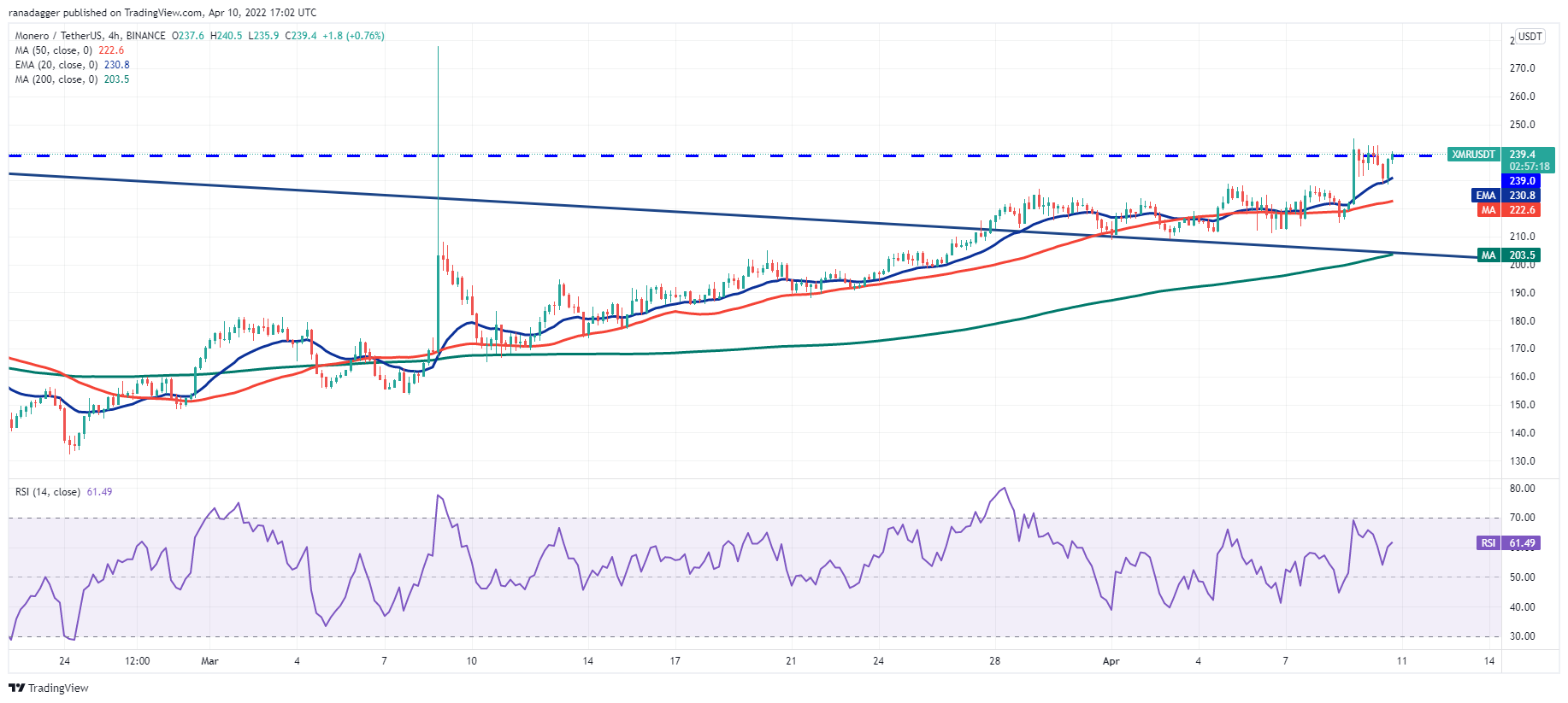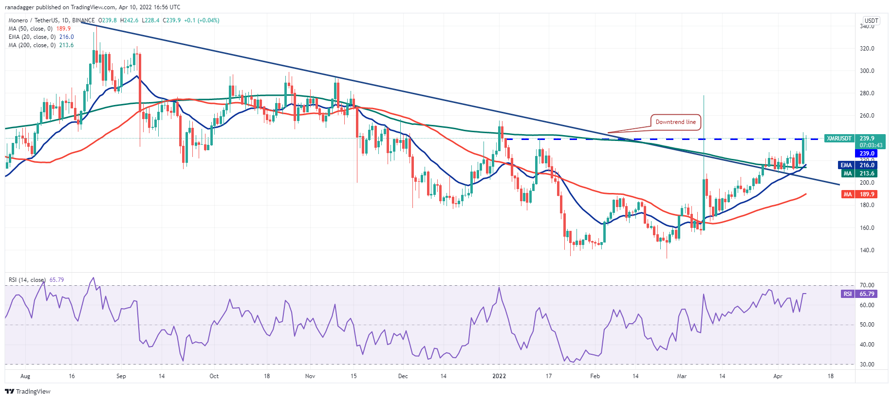 If buyers sustain the price above $239, the XMR/USDT could further pick up momentum and rally to $255.