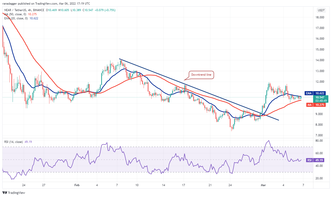 The RSI is near the midpoint and the 20-day EMA has flattened out, indicating a status of equilibrium between the bulls and the bears. If the price rebounds off the current level and breaks above $12, it will suggest that bulls are on a comeback. The NEAR/USDT pair could then rally to $14 where it may again encounter strong resistance from the bears.