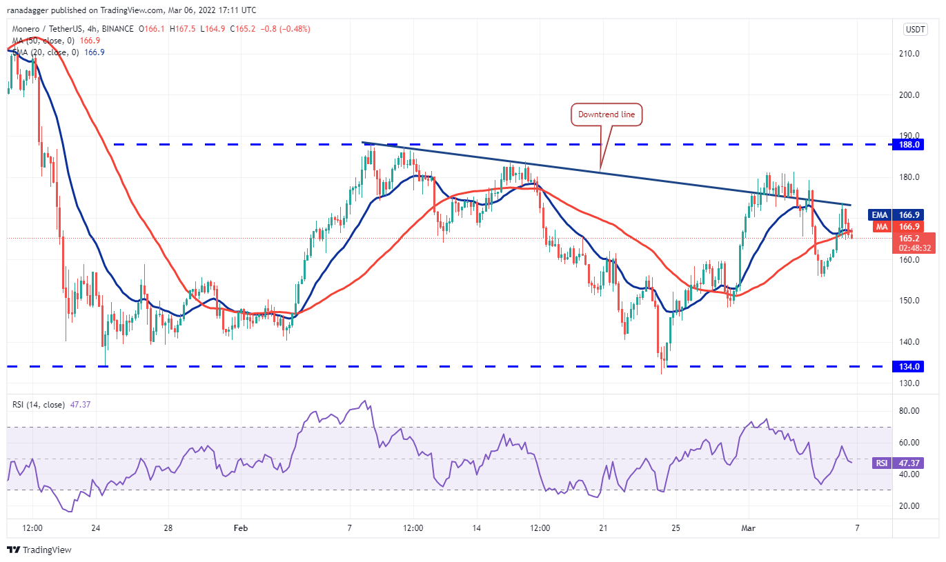Contrary to this assumption, if the price turns down and slips below $155, the bears will attempt to pull the XMR/USDT pair to $134.