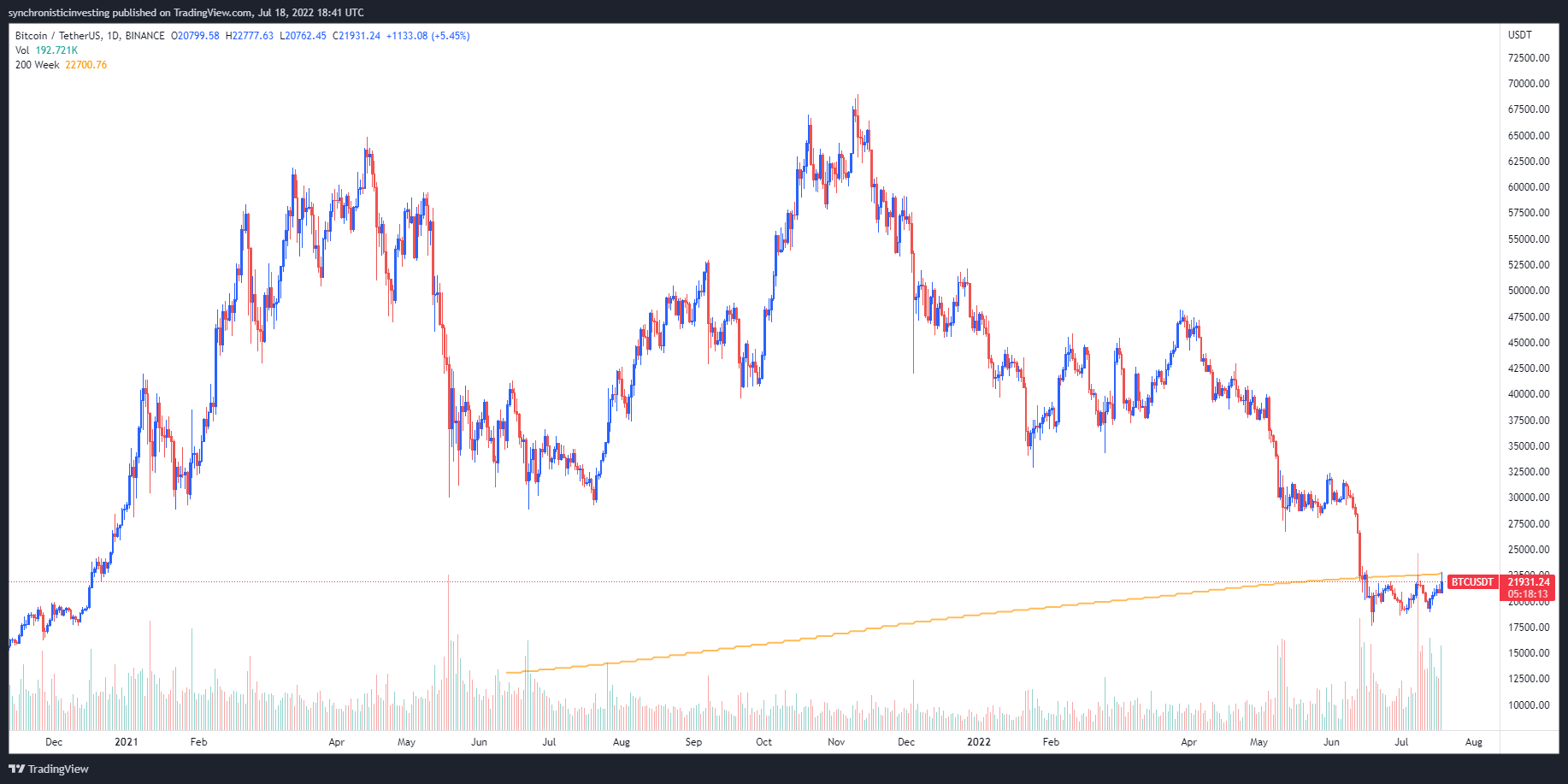 Data from Cointelegraph Markets Pro and TradingView shows that over the past week, Bitcoin has rallied significantly and at the time of writing BTC holds a 16% weekly gain from its recent low at $18,907.