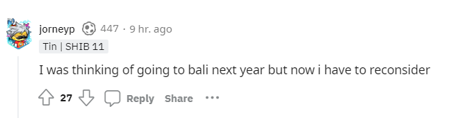 On the other hand, another Redditor believes that the ban “makes sense” for Indonesia. According to the community member, the country uses tourist money to “prop up their currency.” This allows the currency to hold its value. Despite this, the Redditor expressed that they disagreed with the ban.