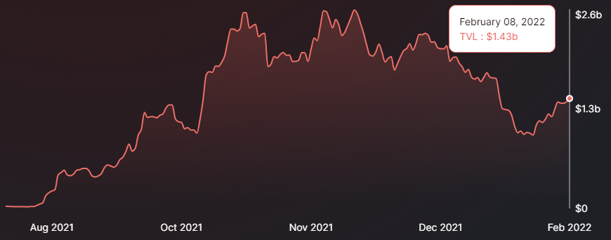 The TVL on Trader Joe is $1.43 billion at the time of writing, up from $957 million on Jan. 28 but still well below its all-time high of $2.59 billion on Dec. 1, 2021.