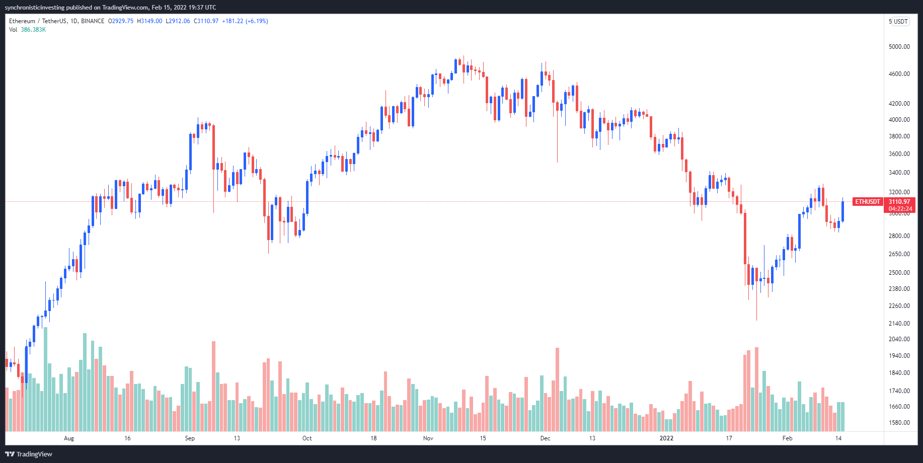 Data from Cointelegraph Markets Pro and TradingView shows that after bouncing off a low of $2,826 in the early trading hours on Feb. 15, the price of Ether rallied 11.4% to a daily high of $3,148.