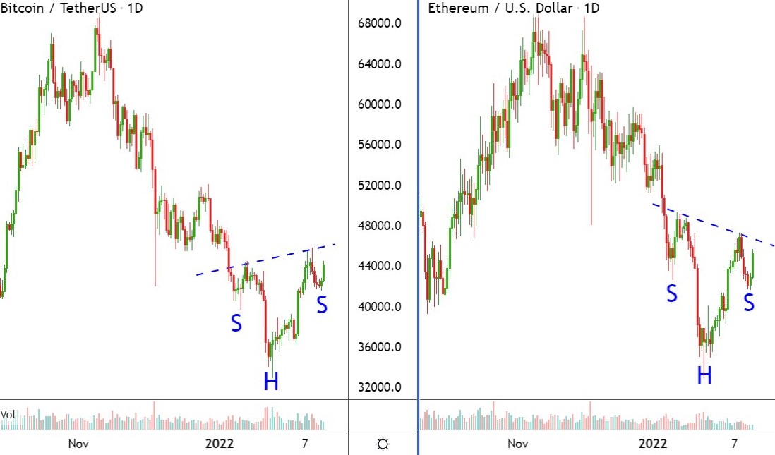 Bitcoin and Ether have similar daily charts