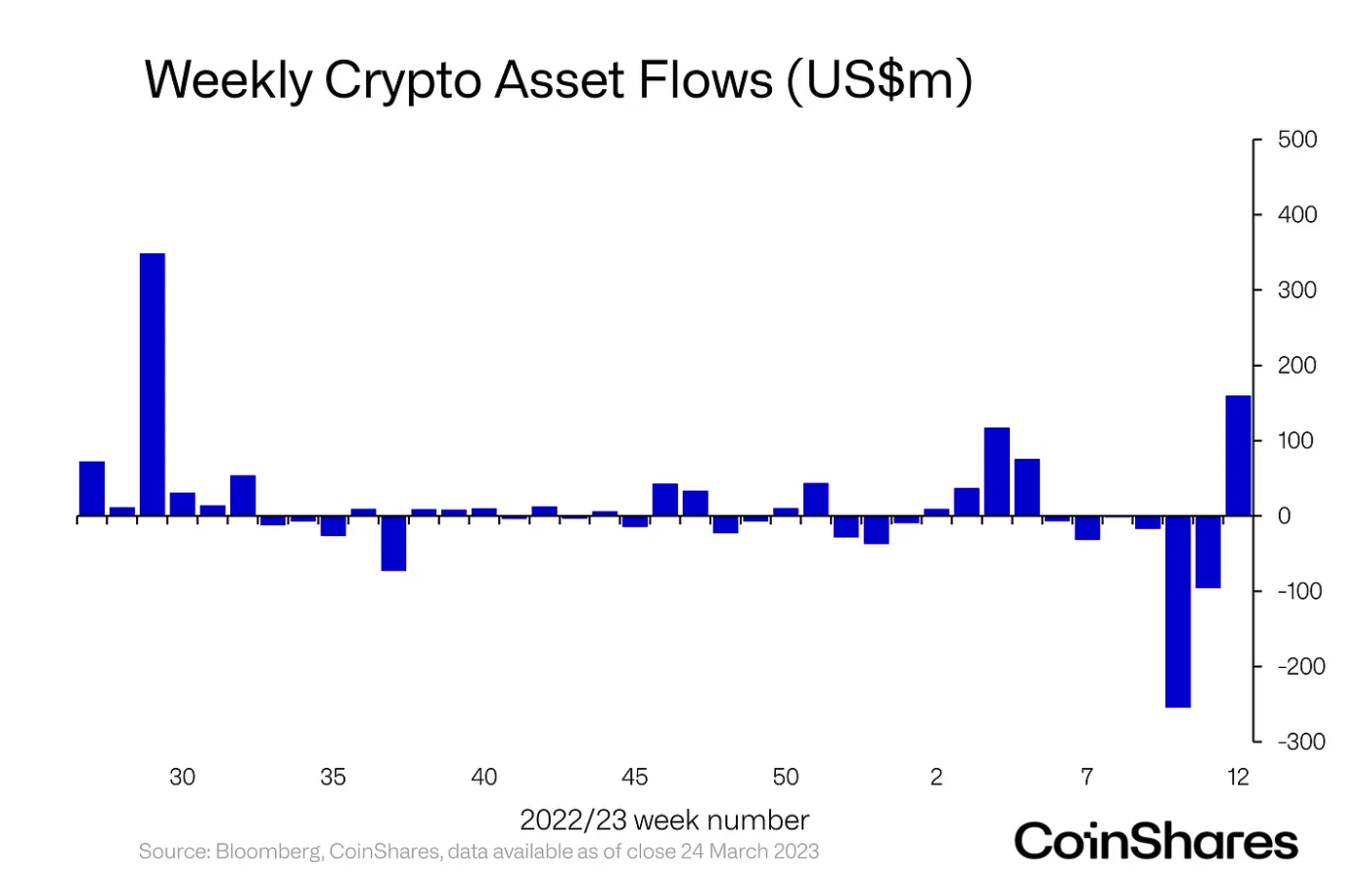 https://images.cointelegraph.com/images/840_aHR0cHM6Ly9zMy5jb2ludGVsZWdyYXBoLmNvbS91cGxvYWRzLzIwMjMtMDMvYjcwZTcwYzMtNDM2Zi00MDcyLWEzYmItYzkxNmQzYjQ3MTc5LmpwZw==.jpgAccording to CoinShares, crypto investment products experienced weekly inflows of $160 million, the largest since July 2022.