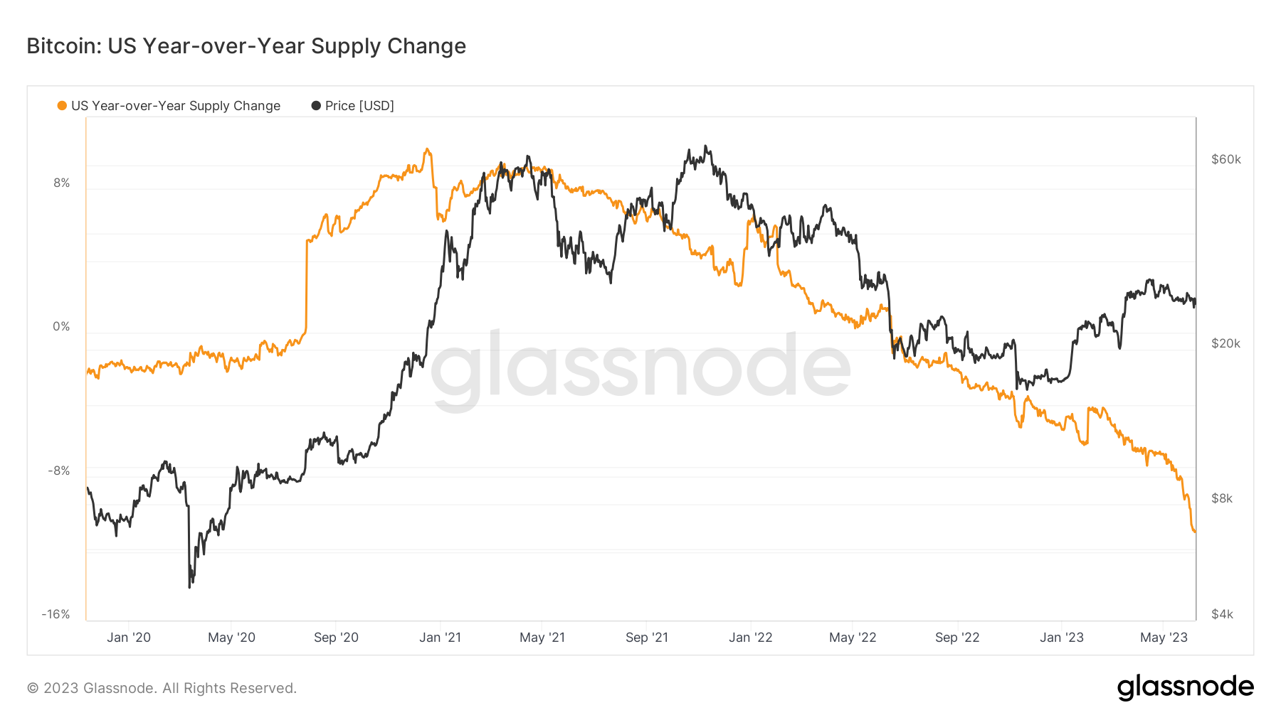 “A clear divergence is visible in the year-over-year BTC supply change based on geographical regions. The extreme dominance of US entities in 2020-21 has clearly reversed, with US supply dominance falling by 11% since mid-2022,” Glassnode researchers commented.