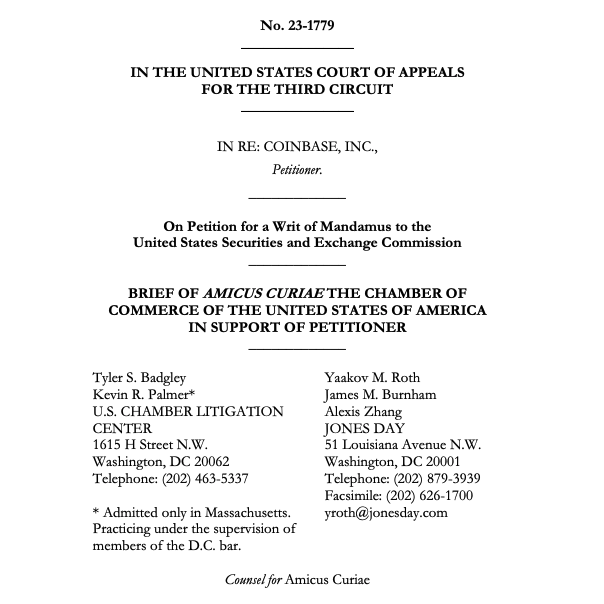 The Chamber of Commerce isn’t alone in providing legal support for Coinbase. Paradigm, the crypto investment firm led by Coinbase co-founder Fred Ehrsam petitioned to file another amicus brief in support of the crypto exchange, similarly claiming that the SEC’s actions have “crippled a nascent industry.”