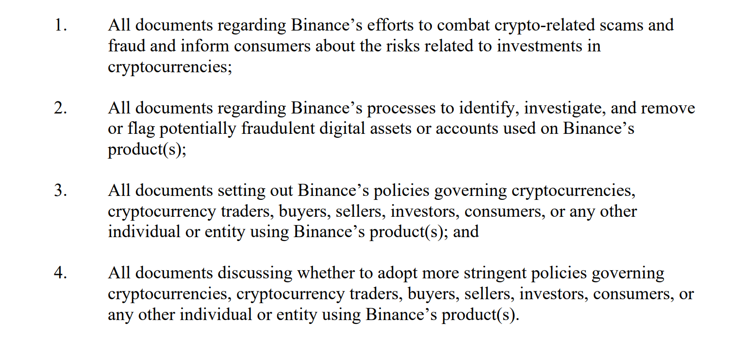 Binance US will require to produce all requested documents since it began operation and has been given a deadline of less than two weeks, Sept. 12, 2022, to produce the same, as shown below.