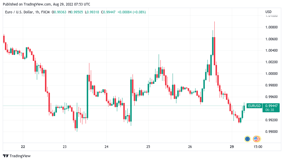 The dollar’s surge likewise spelled pain for major fiat currencies, notably the euro, which swiftly headed back below parity with the greenback into Aug. 29.