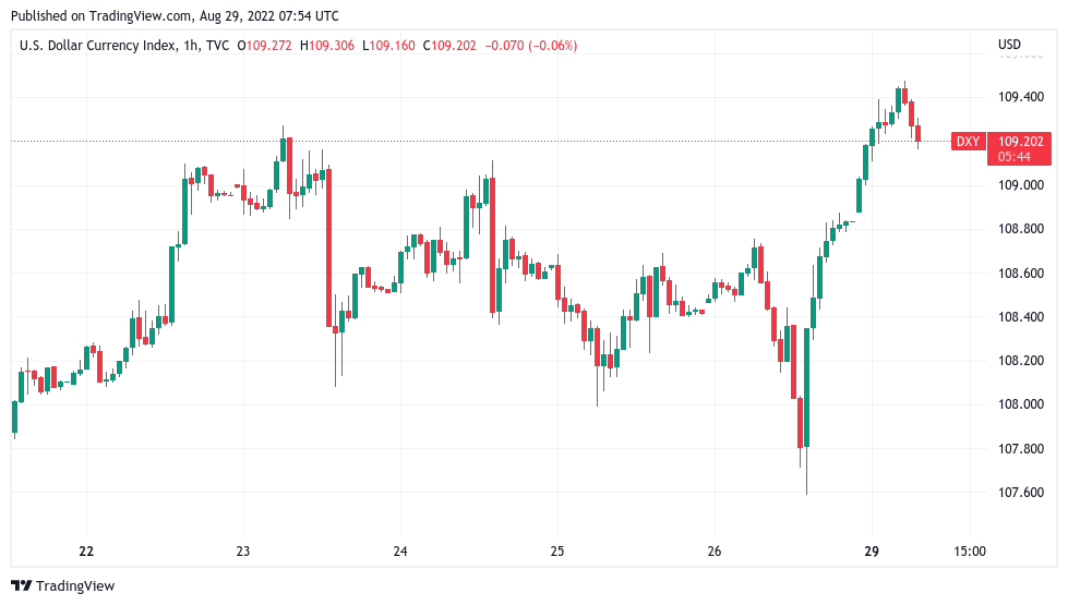 At the time of writing on Aug. 29, those highs are still playing out, DXY having hit 109.47 in its highest spike since September 2002.