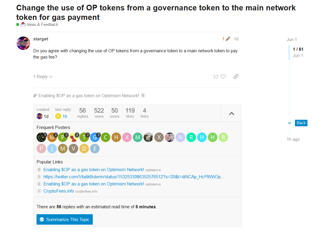 As for the OP gas fee proposal, which itself was floated in the Optimism governance forum for ideas and feedback yesterday, sentiment among the community appears mixed.
