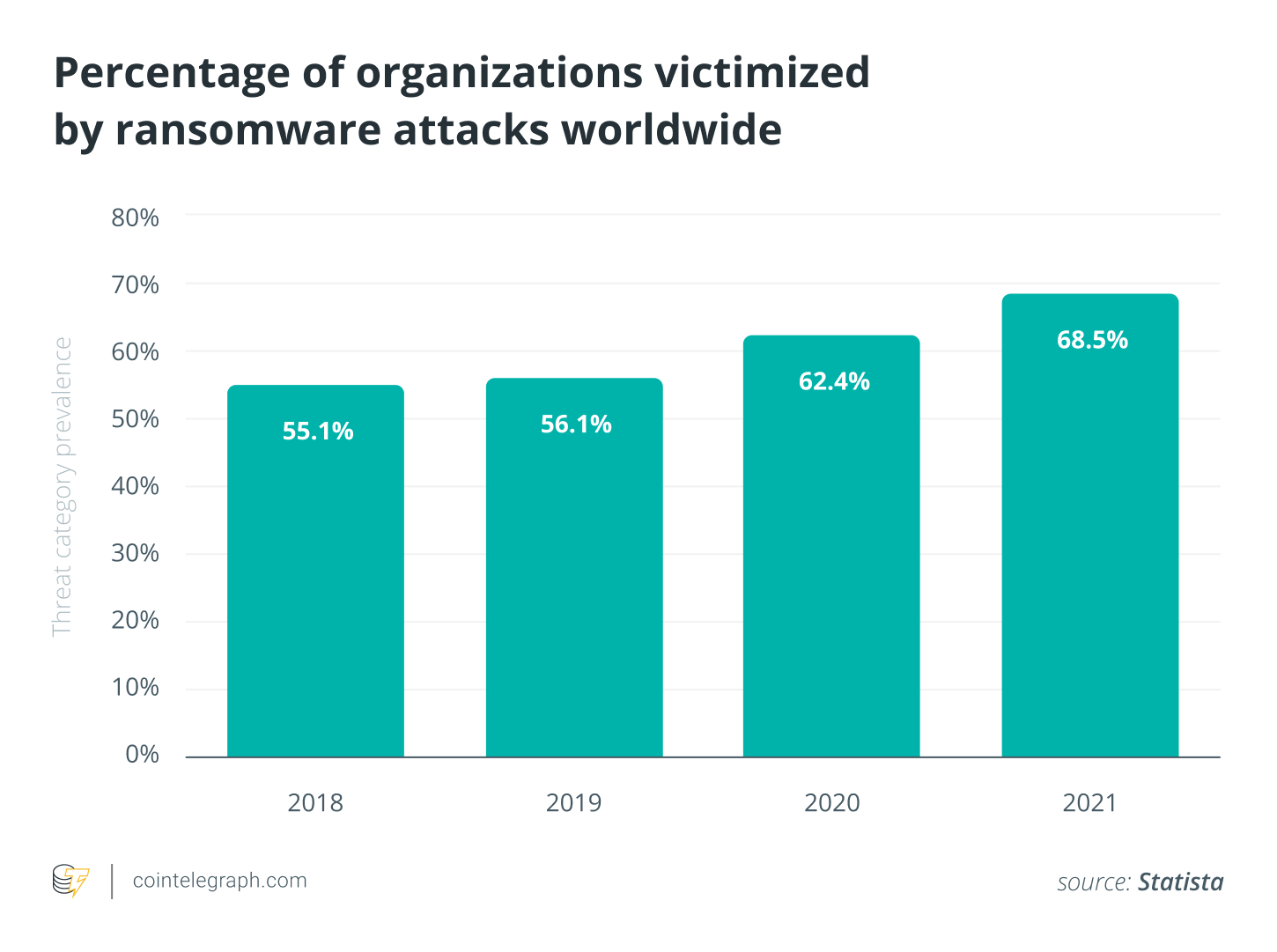 https://images.cointelegraph.com/images/840_aHR0cHM6Ly9zMy5jb2ludGVsZWdyYXBoLmNvbS91cGxvYWRzLzIwMjItMDIvYjA5OTkzMDAtMjYxOS00MmNhLWIwNmUtOTZkNzFlZDI1YzUxLmpwZw==.jpgJust between July 2020 and June 2021, ransomware activity soared by a whopping 1,070%, according to a recent Fortinet report, with other researchers confirming the proliferation of this mode of extortion. Mimicking the prevalent business model of the legitimate tech world, ransomware-as-a-service portals popped up in the darker corners of the web, institutionalizing the shadow industry and slashing the skill ceiling for wannabe-criminals. The trend should be ringing a warning bell through the crypto ecosystem, particularly since ransomware attackers do have a knack for payments in crypto.