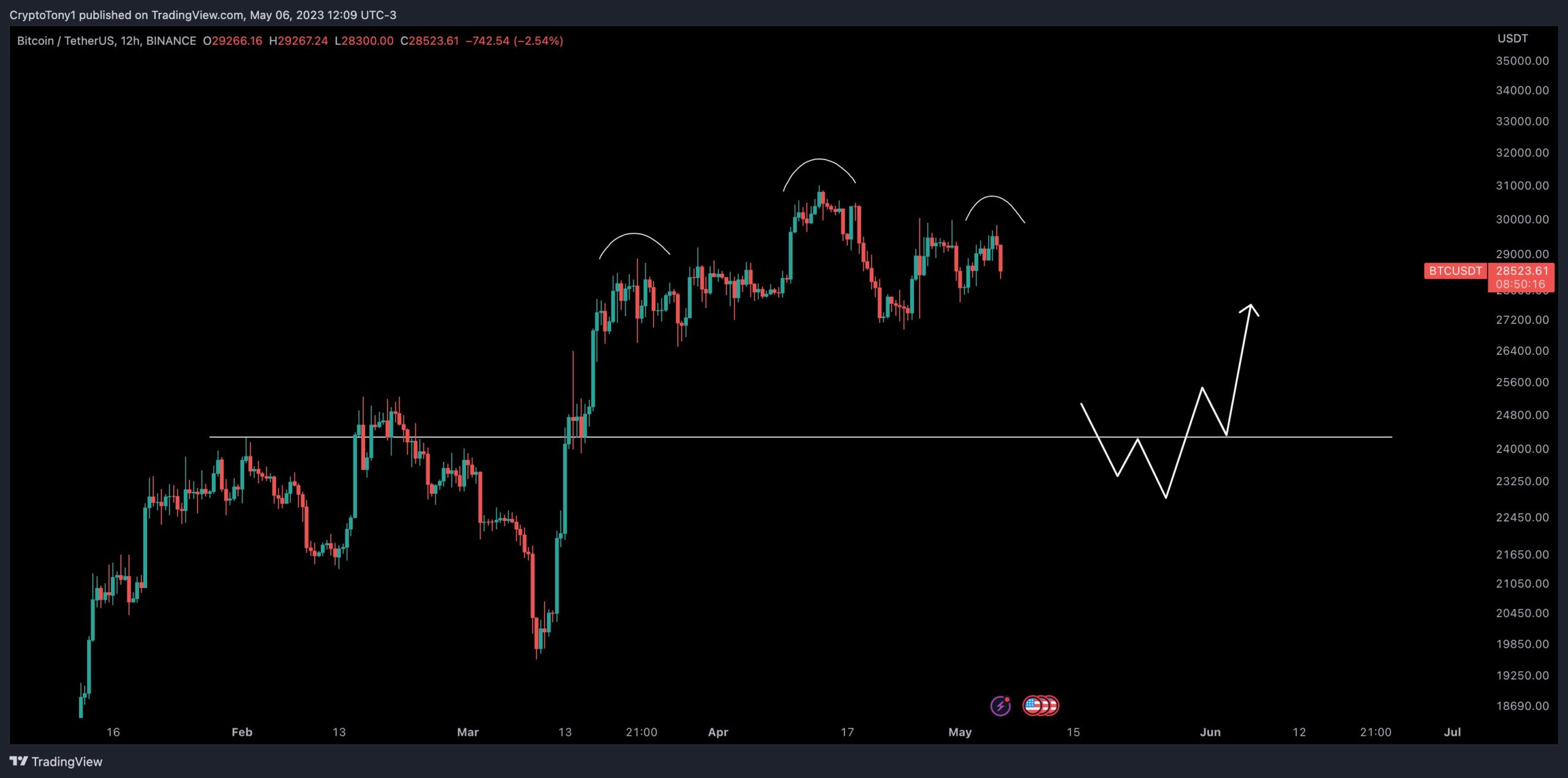 Now looking to short above $29.5k till $31.5k for $24k https://t.co/uewwZLtMzc pic.twitter.com/BVtGahtLr7— Cryptoce (@CryptoAceBTC) May 6, 2023