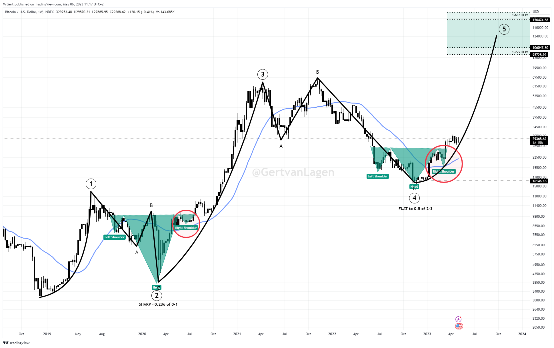 Analyzing the weekly chart, analyst Gert van Lagen flagged the 200-week simple moving average (SMA) as the resistance line to clear next, with Bitcoin possibly completing an equally bullish inverse head and shoulders chart pattern.