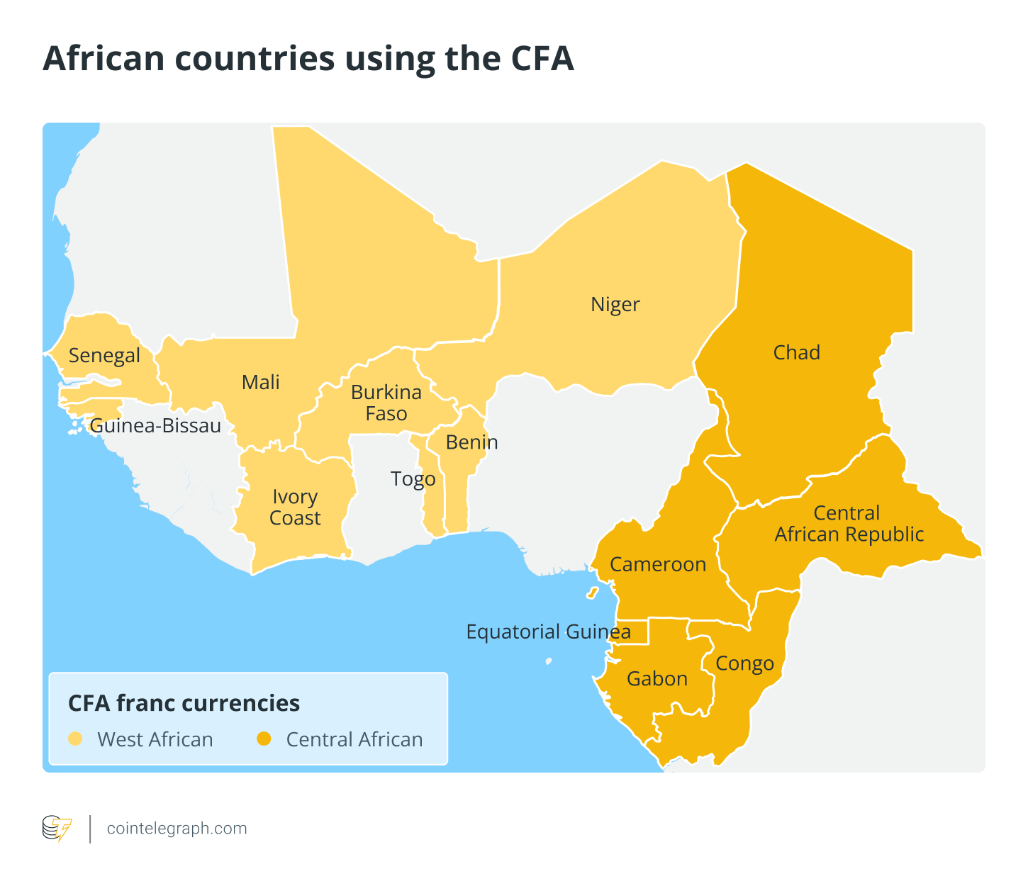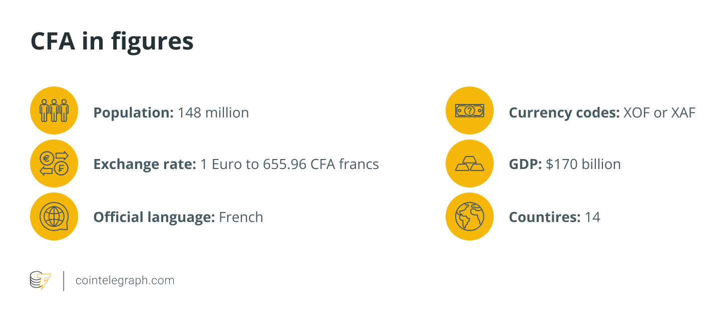 https://images.cointelegraph.com/images/840_aHR0cHM6Ly9zMy5jb2ludGVsZWdyYXBoLmNvbS91cGxvYWRzLzIwMjItMDMvMDQ5NmIwYmMtNzMwNC00OTdiLTlmMjUtZTdiZGI1NWU0ZWQ5LmpwZw==.jpgNearly 150 million people use the franc of the Financial Community of Africa (CFA) on a daily basis, from Senegal in the extreme west to Gabon in the center of the continent.