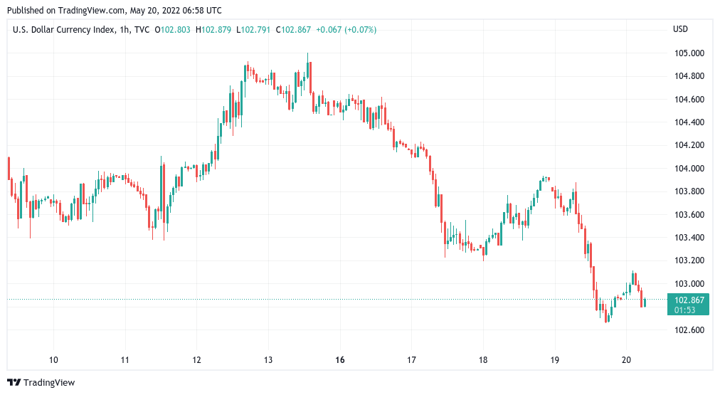 The U.S. dollar index (DXY) provided the background to Bitcoin’s relatively solid performance, this coming off two-decade highs to dip 2% in a week.