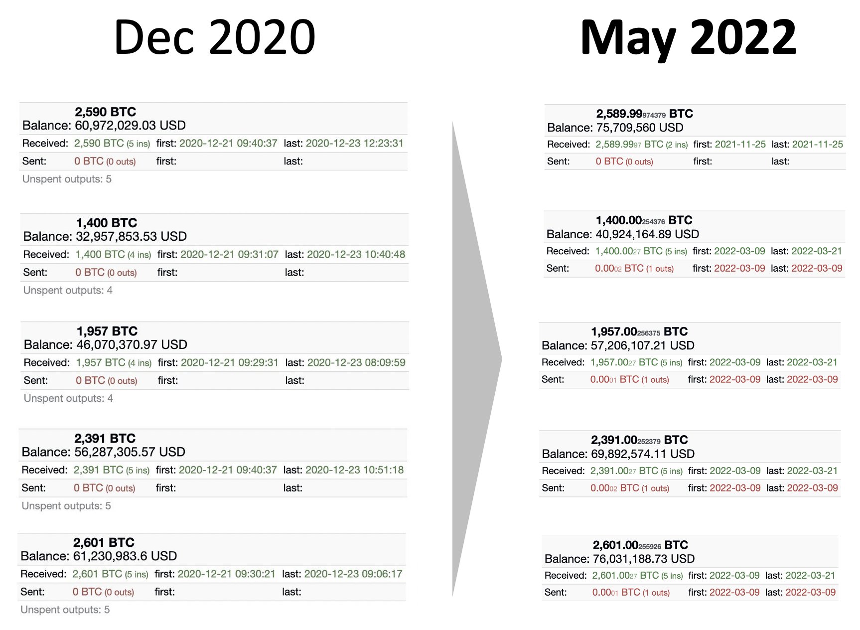 For instance, institutions that deposited 10,939 BTC (~$335 million at today’s price) with Coinbase Custody in December 2020, when BTC/USD was around $23,000, have not moved since, on-chain data from CryptoQuant shows.