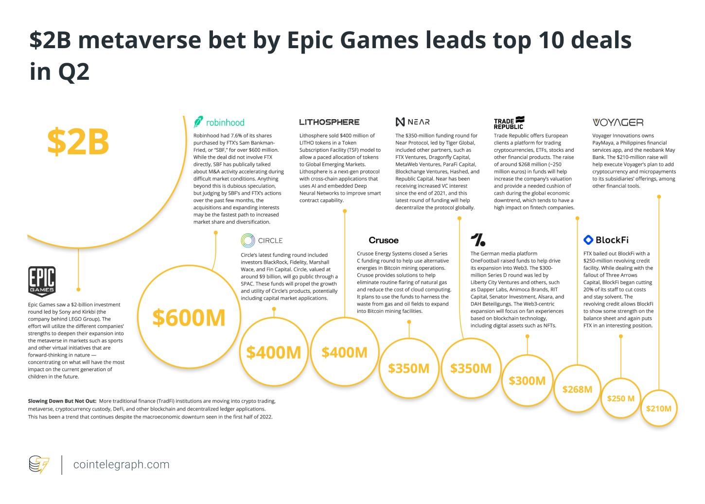 https://images.cointelegraph.com/images/840_aHR0cHM6Ly9zMy5jb2ludGVsZWdyYXBoLmNvbS91cGxvYWRzLzIwMjItMDcvYzkwMTQxZDItOTBhMS00ODc4LWI3MWUtMWE5NTRjNTljZjYyLmpwZw==.jpgCointelegraph Research brings an analysis of all the deals and trends from venture capital (VC) in the blockchain industry during the second quarter of 2022.