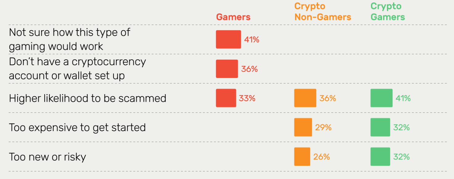 According to the survey, gamers pointed to practical barriers as their main reason for shying away from Web3 games, with gamers often not knowing how they might work and lacking a blockchain wallet.