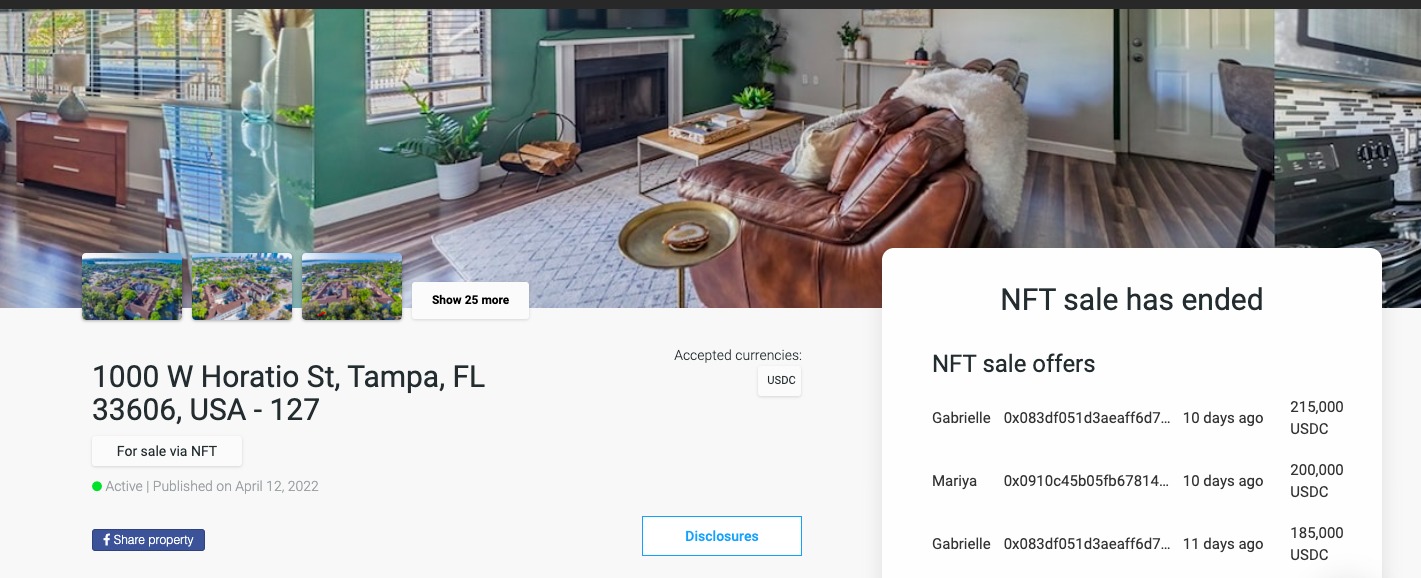 “The most recent NFT property that sold in Tampa was purchased using the USD Coin stablecoin. Bidding happened in real-time and ownership was transferred in 15 minutes upon closing the sale, which simplifies and speeds up the entire traditional home buying process. This is important because the U.S. housing market is so competitive today that people don’t have time to wait. NFT properties are also fully transparent, so prospective buyers can make informed decisions by seeing any appraisals, contingencies and anything else up front.”