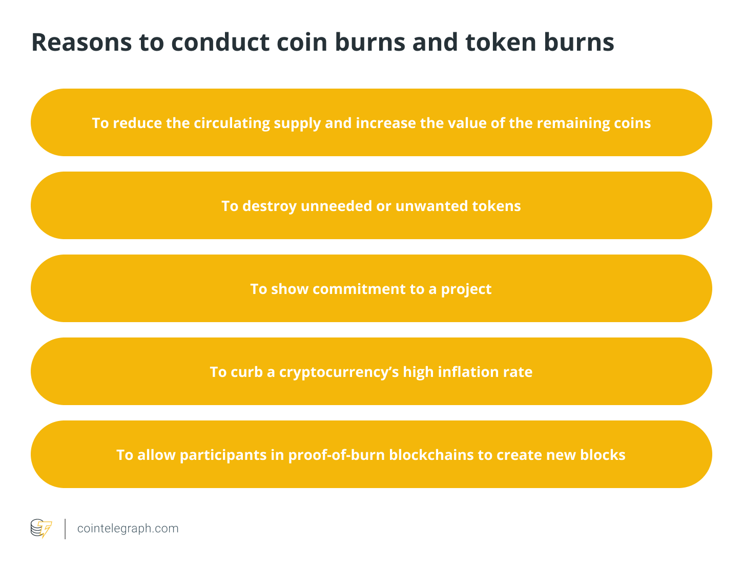 Blockchains and crypto protocols do periodic coin burns and token burns for a couple of reasons, including: