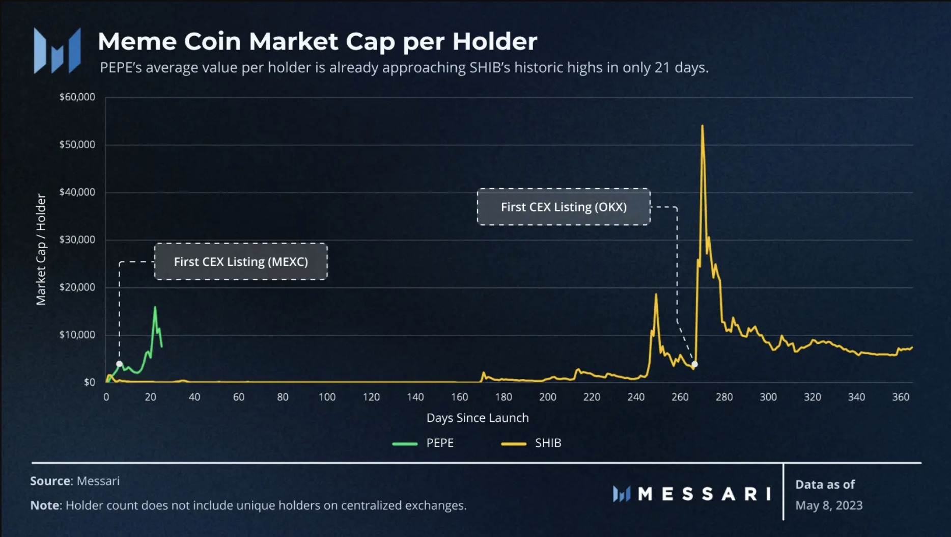 They catalyzed early adoption by creating a coordinated meme campaign. Simultaneously, the media ran stories about early PEPE investors turning thousands of U.S. dollars worth of investments into millions within a week, prompting more people to join the frenzy.