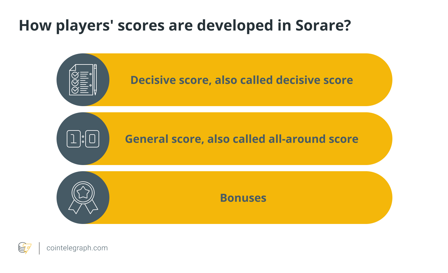 There is a fierce debate on various forums about the value of player cards on Sorare, but the platform itself has simply made the point count public. You can find it under the FAQ on Sorare’s site. Players’ scores are made up of several elements, as mentioned in the image below: