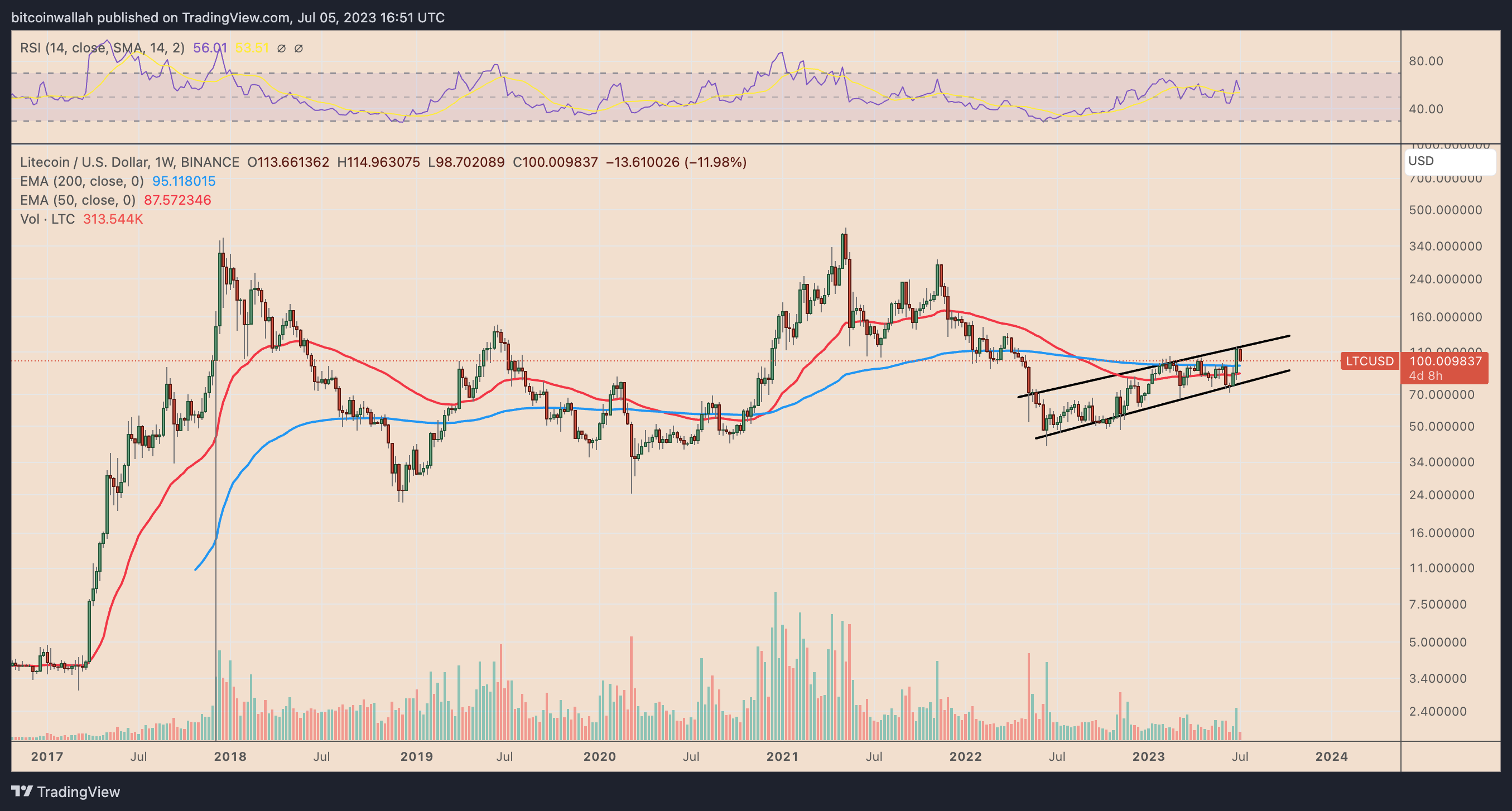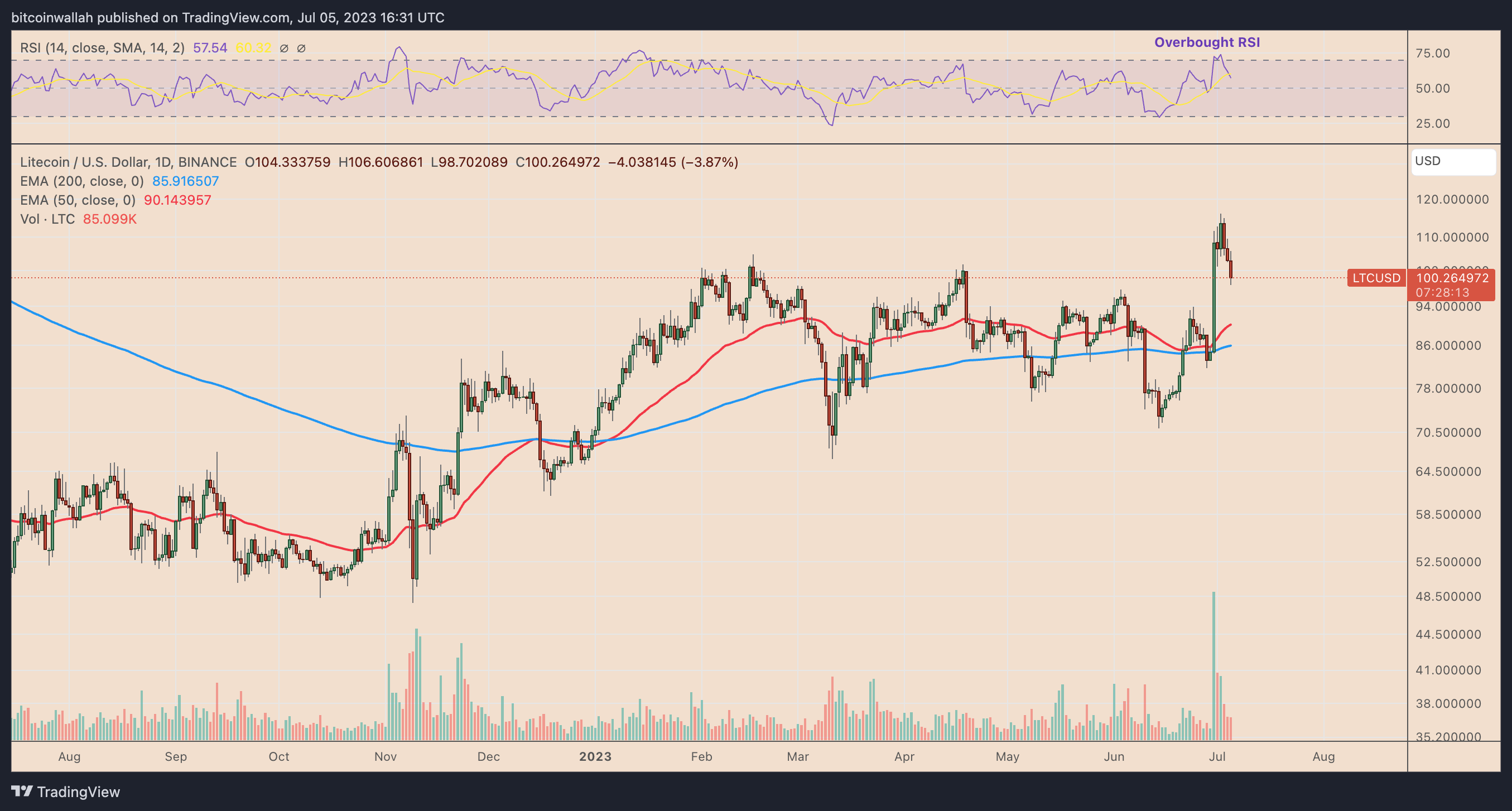Litecoin rallied by more than 65% to reach a year-to-date (YTD) high of $116 on July 2.