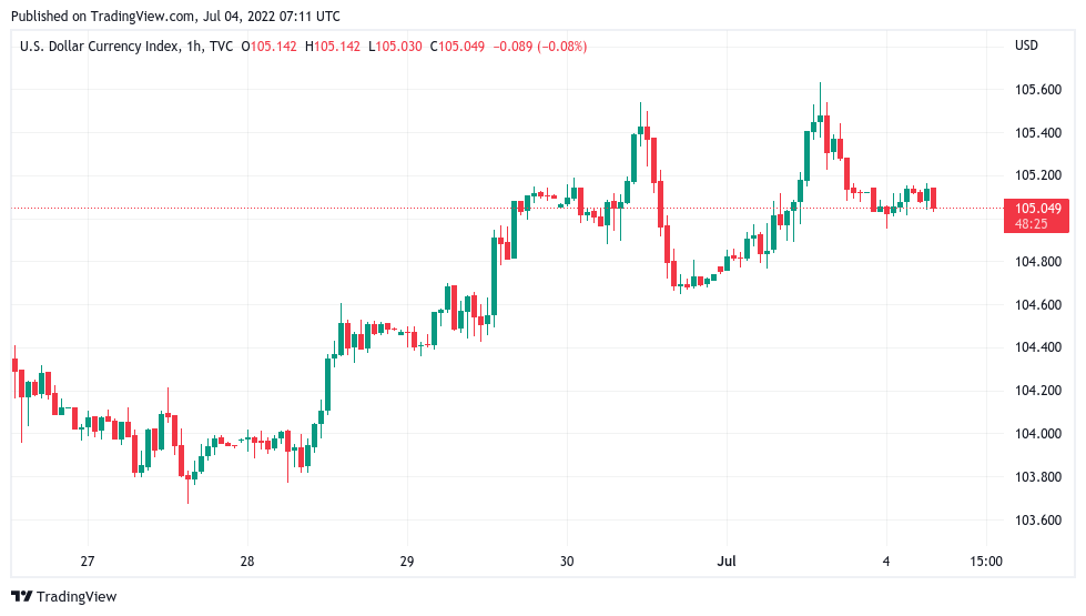 The U.S. dollar index (DXY) stood above 105 at the time of writing.