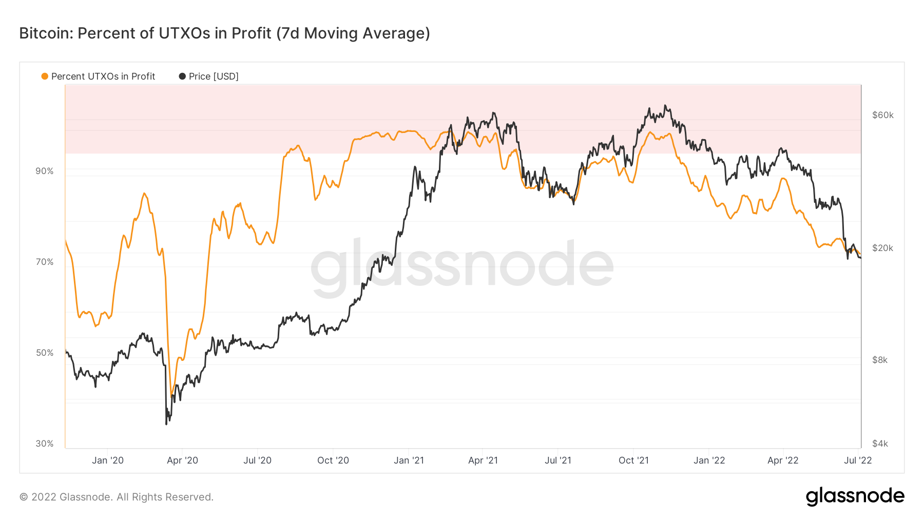 Similarly, the percentage of UTXOs in profit hit a two-year low of just over 72% on July 3.