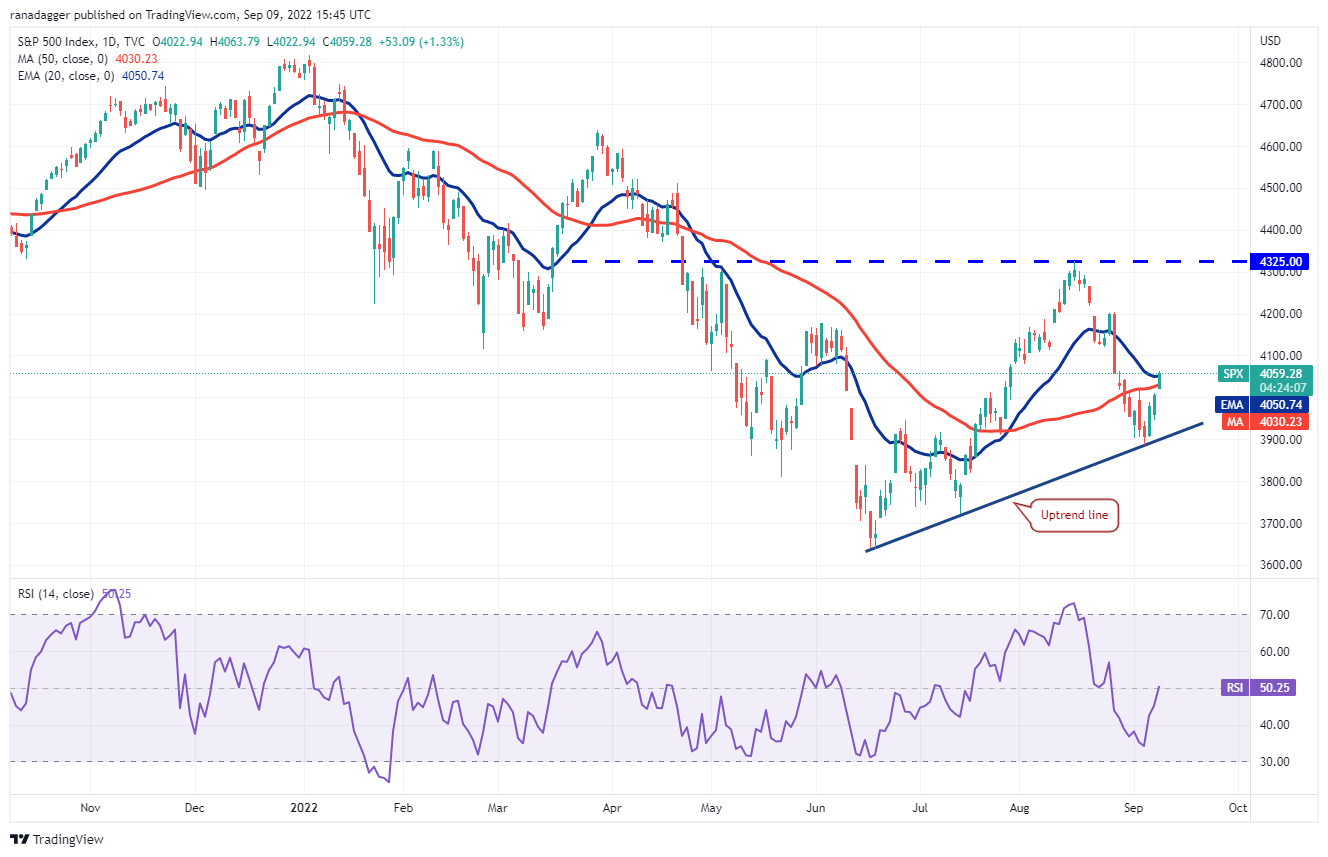 This positive view could invalidate in the short term if the price turns down from the 20-day EMA. If that happens, the bears will attempt to sink the price below the uptrend line. If they succeed, the decline could reach major support at 3,700.