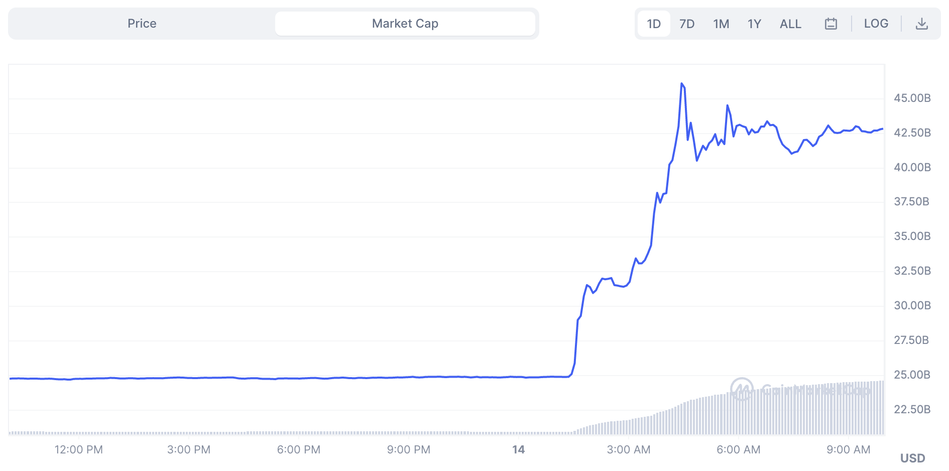 Mere hours after the ruling, XRP market cap surged a whopping $21.2 billion to reach a new yearly high of $46.1 billion, pushing it up from the 7th position to beat out Circle’s USD Coin (USDC) and Binance’s BNB (BNB) token in the process.
