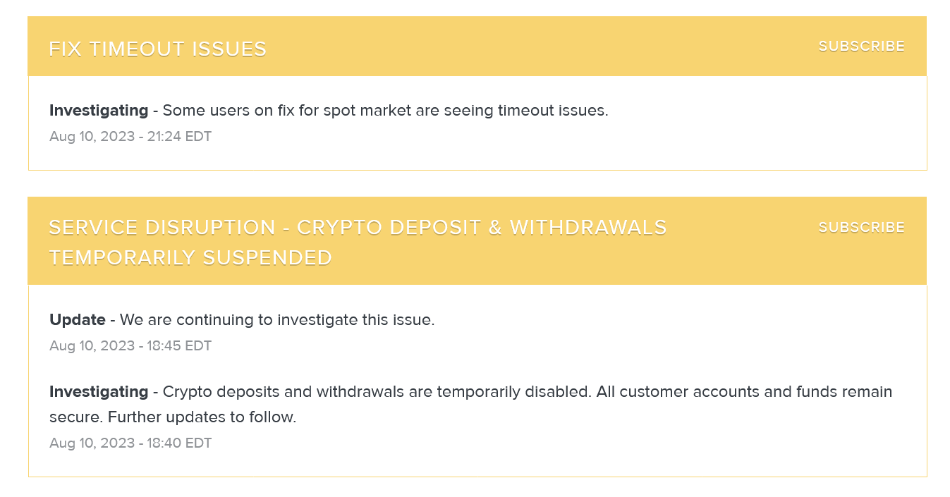 It also reported some users were seeing timeout issues on spot markets.