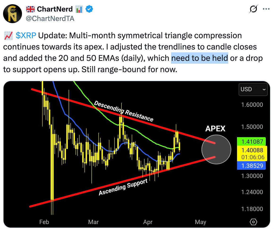 Technical analyst and trader ChartNerd said the moving averages between $1.35 and $1.40 “need to be held” to keep the bullish outlook in play.