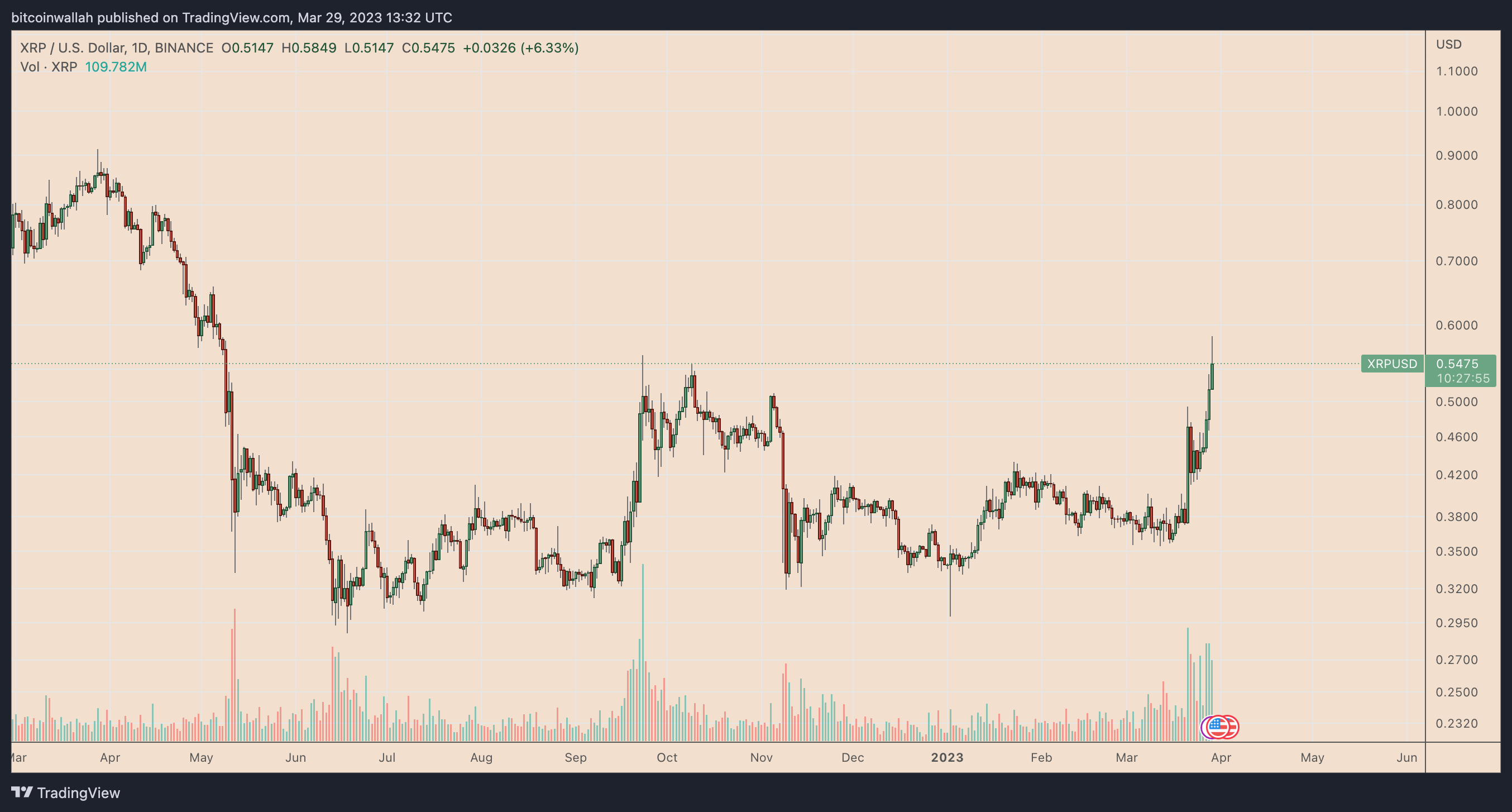On March 29, XRP’s price surged by nearly 15% to $0.58, its highest level in ten months, outperforming Bitcoin (BTC) and Ether (ETH) in the past 24 hours that rose around 4.5% and 2.75%, respectively.