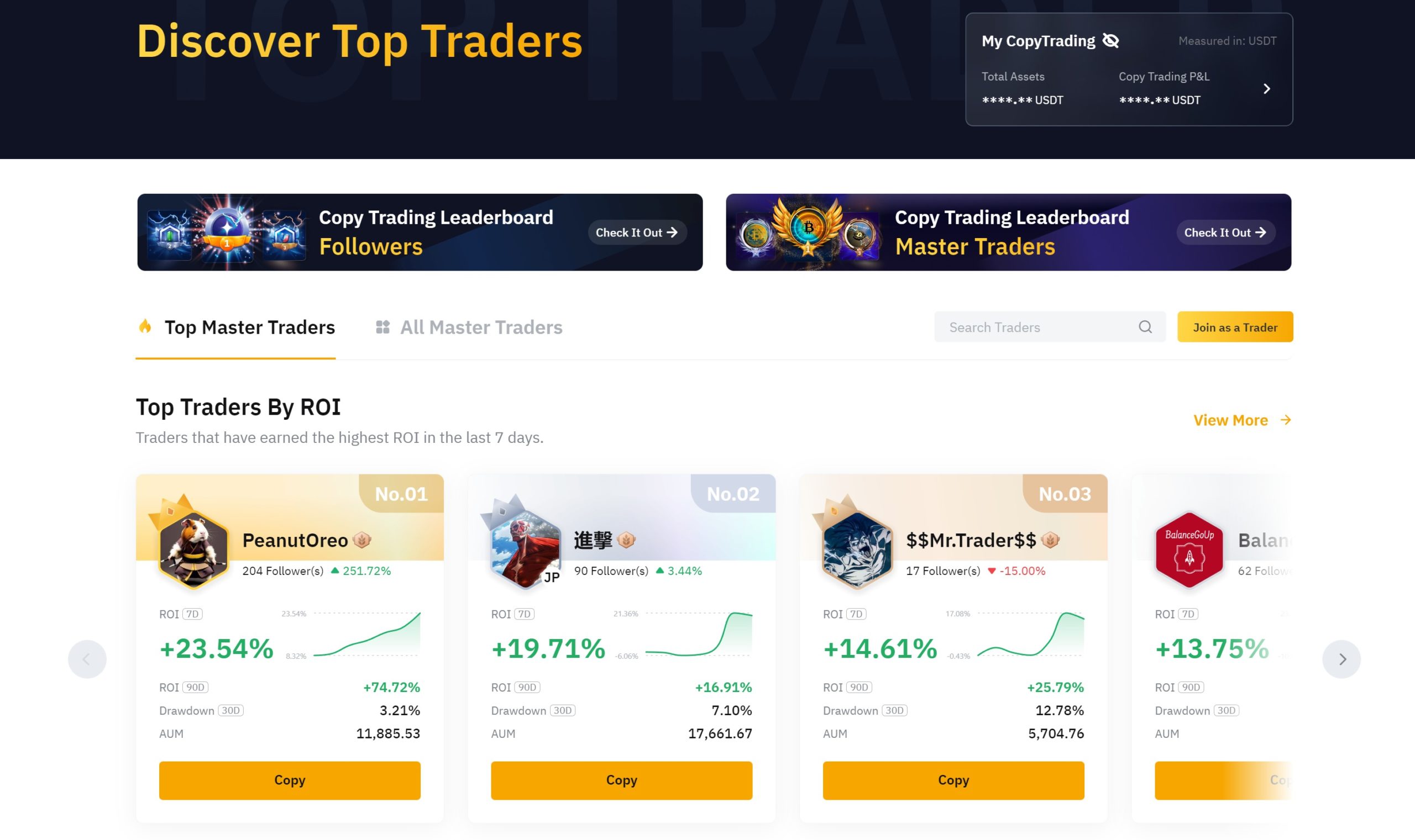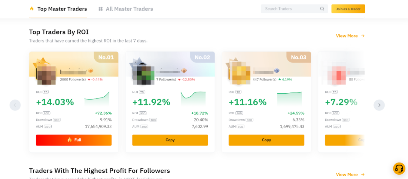 Krok 2: Teraz sa nám zobrazí niekoľko aktuálne najlepších obchodníkov, ktorých môžeme kopírovať. Ak je pri obchodníkovi tlačidlo Copy, tak môžeme ho začať kopírovať.