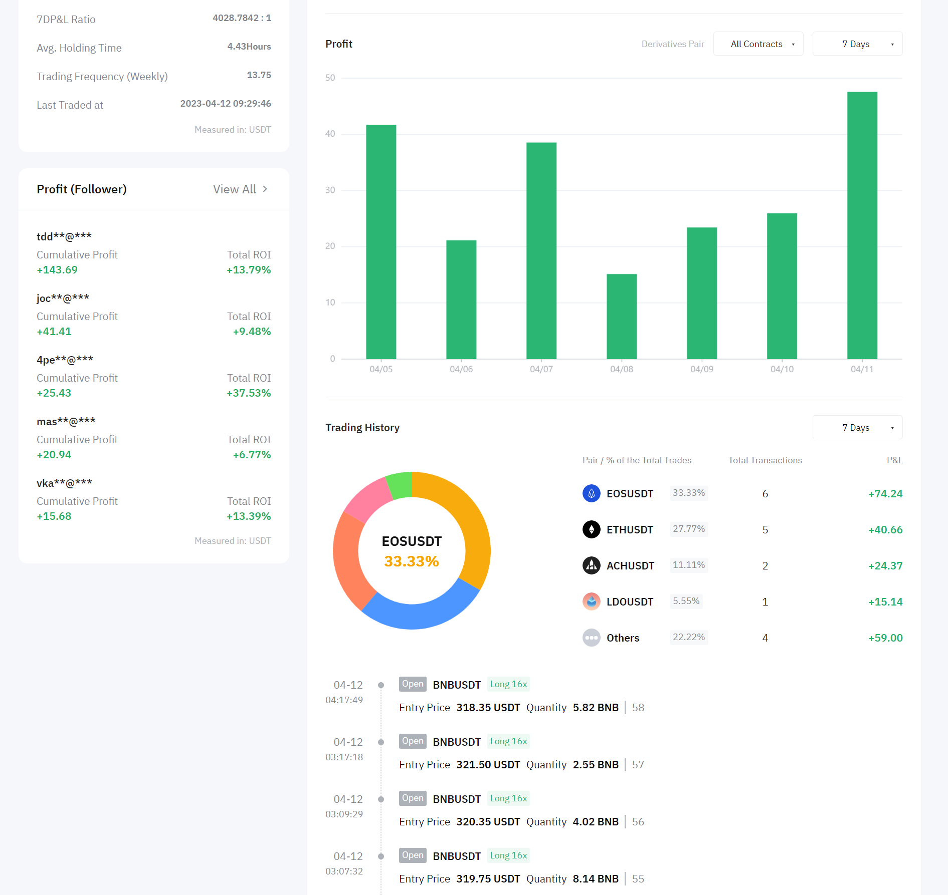 Bybit má veľkú výhodu v tom, že všetky dáta o obchodoch daného obchodníka sú verejne dostupné. Dokonca si môžete pozrieť aj výsledky iných obchodníkov, ktorí kopírujú danú stratégiu. To nám vie výrazne pomôcť v zisťovaní, či skutočne daný obchodník je dobrý a dáva zmysel mu zveriť časť prostriedkov.