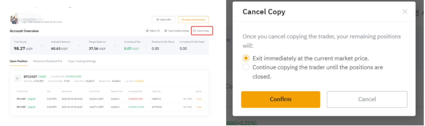 Ak chcete zrušiť kopírovanie svojho obchodníka, prejdite do Centra používateľov, kliknite na details a vpravo hore je tlačidlo Cancel Copy.