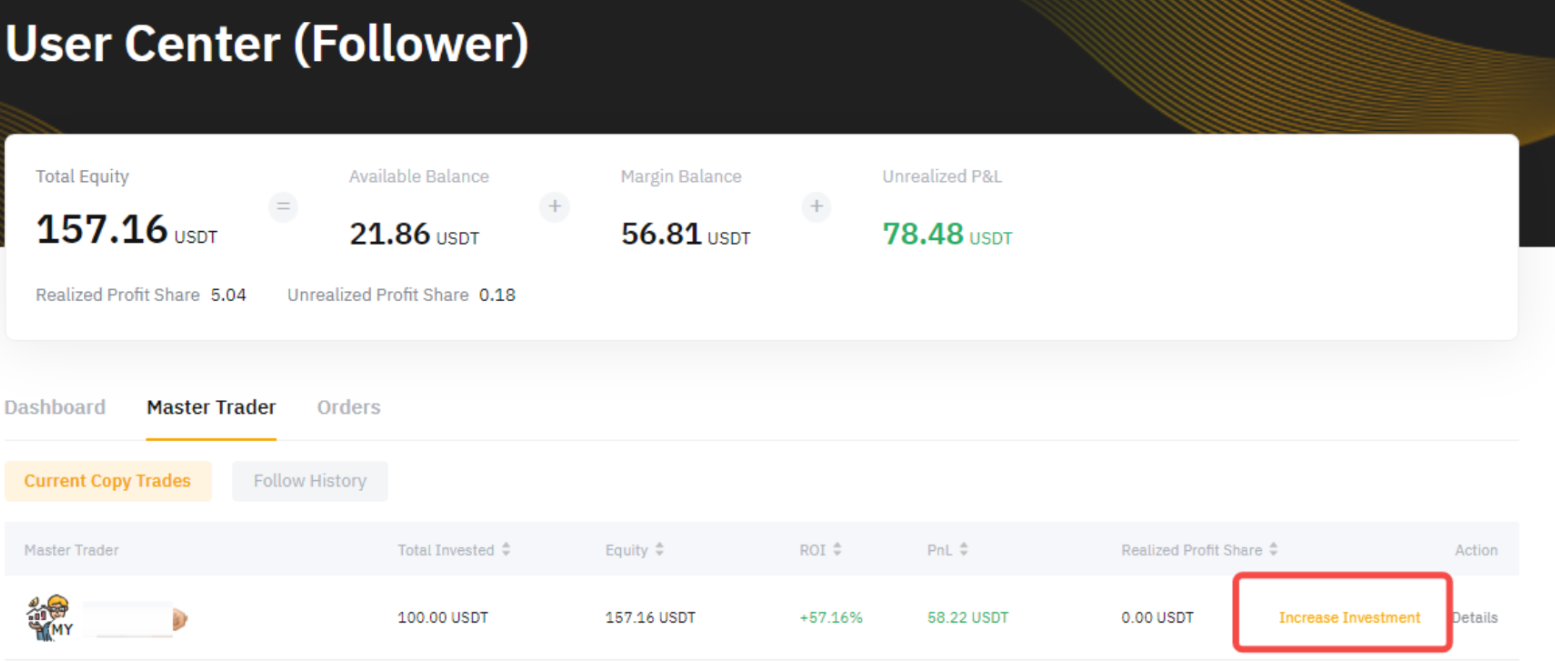 Zvýšenie sumy investície do copy tradingu