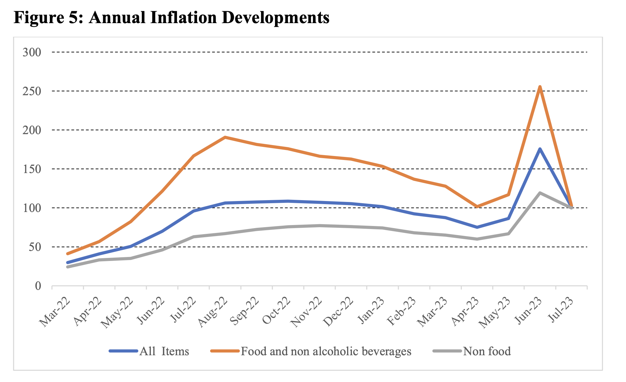 Inflation in Zimbabwe reached 175.8% in June after the bank adopted a new benchmarking index. The RBZ set its interest rate at 150% that month. The U.S. dollar is heavily used in local trade.