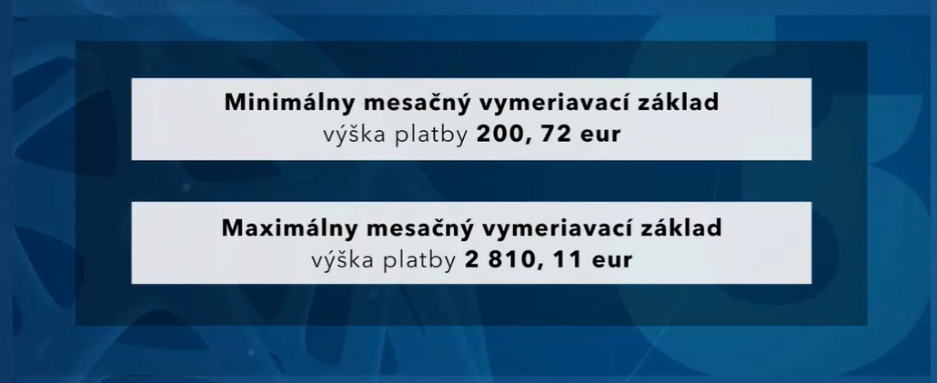 Minimálne sociálne odvody pre SZČO dosahujú v súčasnosti 200,72 eur mesačne. Suma predstavuje 33,15 % z minimálneho vymeriavacieho základu 605,50 eur. Maximálny odvod predstavuje 2 810,11 eur, čo je rovnaké percento z vymeriavacieho základu 8 477 eur. Od roku 2024 sa minimálna výška sociálnych odvodov zvýši na 216,13 eur a maximálna výška na 3 025,93 eur mesačne.
