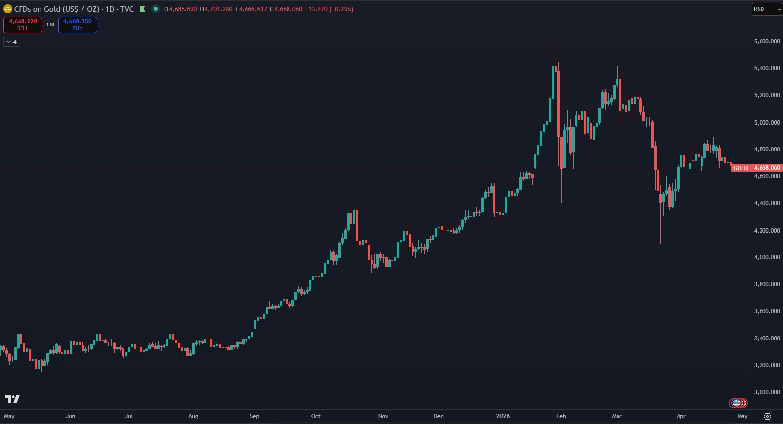 Zlato dosiahlo začiatkom roka rekordné úrovne a napriek následným korekciám zostáva jedným z najsledovanejších aktív na globálnych trhoch. Historické maximum 5 598 dolárov sa zrodilo 29. januára 2026, po ktorom nasledovalo oslabenie. Aktuálna cena sa pohybuje okolo 4 667 dolárov, čo stále predstavuje medziročný nárast o 40 %. Za posledných päť rokov cena zlata vzrástla o 164 %, čo ho radí medzi najvýkonnejšie aktíva tohto obdobia. Trhová kapitalizácia zlata dnes dosahuje impozantných 32,57 bilióna dolárov, čo z neho robí najhodnotnejšie aktívum na svete.